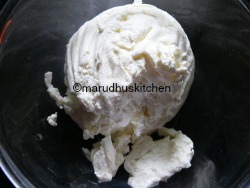 1.Take curd in a muslin cloth tie it to some hanging available in kitchen so that all the water drains out.