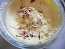 3.Then add saffron with milk and beat nicely add chopped nuts and combine.