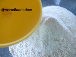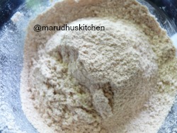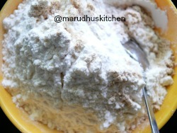 - Add all purpose flour,fox-tail flour and baking powder together sieve and take it in a large bowl.