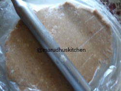 9.Roll out evenly by covering it cling film so that it will not stick.