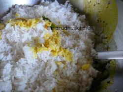 1. After boiling rice take out in a broad vessel add sesame oil(2tbsp)and salt mix and keep ready.