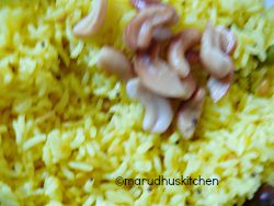 simple lemon rice /marudhuskitchenMost befitting travel friendly food here in South Indian houses is the lemon rice I remember my amma making either lemon rice or tamarind rice for picnics we go or even for temple visits.Whether its a tour to distant places or a simple picnic we don’t travel alone as a single family my dear uncle’s family who is my father’s best friend will accompany us and that aunty will prepare either lemon rice or curd rice or tamarind rice/pulisadam,there will be mutual sharing in preparing the dishes and they use to plan this in advance.simple lemon rice /marudhuskitchenWhen its lunch time we use to stop under a road side tree for shade and have our delicious heart warming lunch and continue our journey by cracking jokes and non stop chatting continues right from start till the end !These childhood memories are ever cherishing and really its a treasure to be remembered.One who had tasted Temple lemon rice as prasadam will accept the magical divine taste that is very unique that you will yearn each time you taste it!for me this lemon rice temple prasadham is the best in the whole world. For lemon rice it should be made little tangy so after some time rice will absorb the tangynes all with super good taste.For lemon rice they use to add peanuts or cashews when tempering itself but this time I have roasted cashews separately and added but you can follow the usual method as it is done.