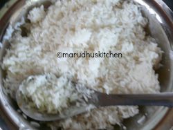 I have added some water along with the lemon juice so that the mixture evenly absorbs and coats the rice evenly.
