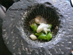 5.Grind green-chillies, garlic with some needed salt to a paste.
