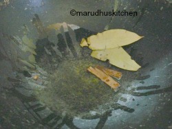 - Keep a kadai with oil add cinnamon,cloves and bayleaves.