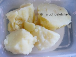 2.Then boil potatoes side by side and mash well.