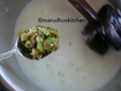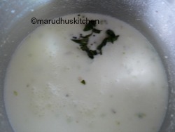 - Add the tempering to the buttermilk and finally add chopped coriander and serve.