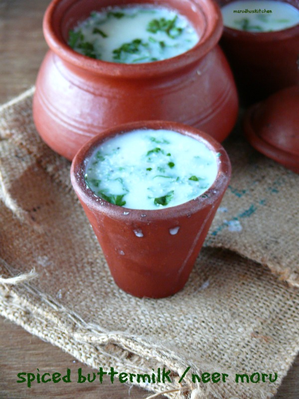 The same tradition continues even today during the festival days especially during mariamman festival(mariamman is South Indian goddess) which is celebrated during summer season in Tamil Nadu.The reason behind having neer moru is that it cools the body, quenches the thirst at the same time stops the dehydration due to over heat.In temples they supply this neermoru/mor throughout the summer days!As a philanthropic attitude some people keep this in a mud pot under a pandal(tent thatched with Palmyra leaves) in front of their houses.