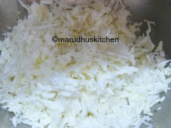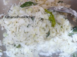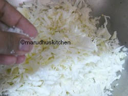 4.Then add chopped cabbage stir in nicely by adding necessary salt till rawness goes.