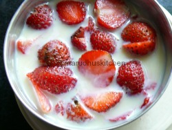 - Make fine paste of strawberries by adding condensed milk.