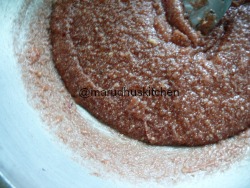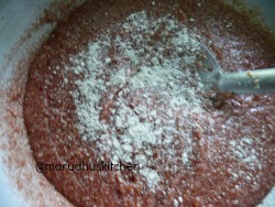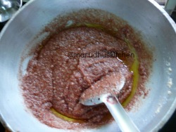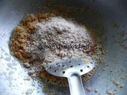 1.Add ghee after it heats up add rava,maida mixture.