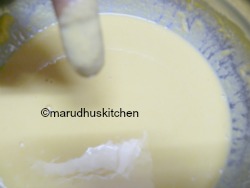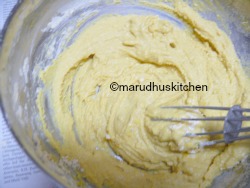 5.Then add water little by little till you reach little thinner than bajji batter consistency.