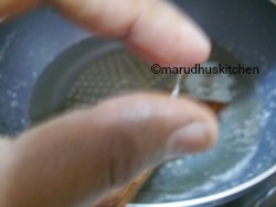 8.The oil should be nicely hot keep ladle close to the oil pour batter with a ladle and with the same ladle press the batter in rotating motion so that batter drops down as perfect balls.