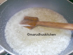 13.Let it boil and when white bubbles start check for 1 thread consistency(if your sugar contain impurities filter and then continue).