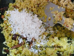 9.Lastly add shredded coconut and switch off.