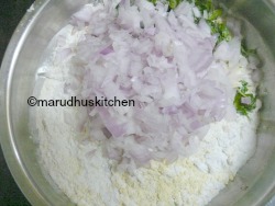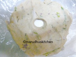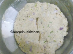 1.Take all above ingredients in a bowl add needed water and mix to form a loose dough.