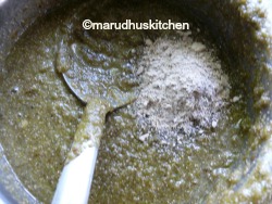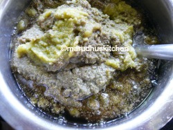 6.Add both pastes to the syrup and mix nicely.Add cardamom powder and mix.