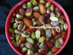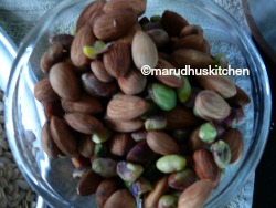 1.First soak badam and pista overnight and in the morning take the skin off from pista and badam and keep.