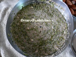 5.Then grind muskmelon seeds, pepper,saunf and khus khus all together to a paste by adding syrup to grind.