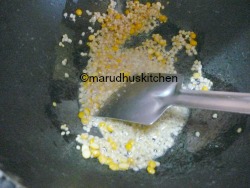 1.Add 1 tbsp of oil in a kadai and fry urad and bengal gram till golden.