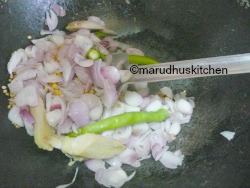 2.Then add small onions,ginger and green chillies.