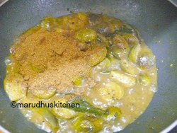 - When brinjals are cooked add vangi masala and let it simmer for few minutes.