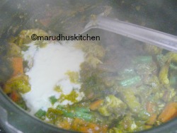 13.Now close the cooker and keep for one whistle then keep the flame low for 5 minutes.