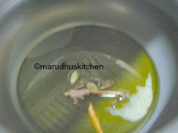 - In a pressure cooker add cinnamom,cloves and cardamom.