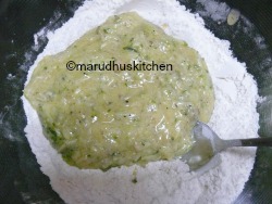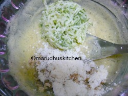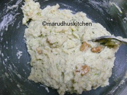 - Add grated zucchini,grated-cheese and walnuts to it and mix well.