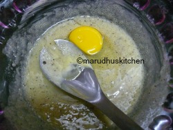 4.Then add egg and beat well till it becomes fluffy.