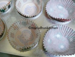 7.Line the muffin moulds with paper cups and keep ready.